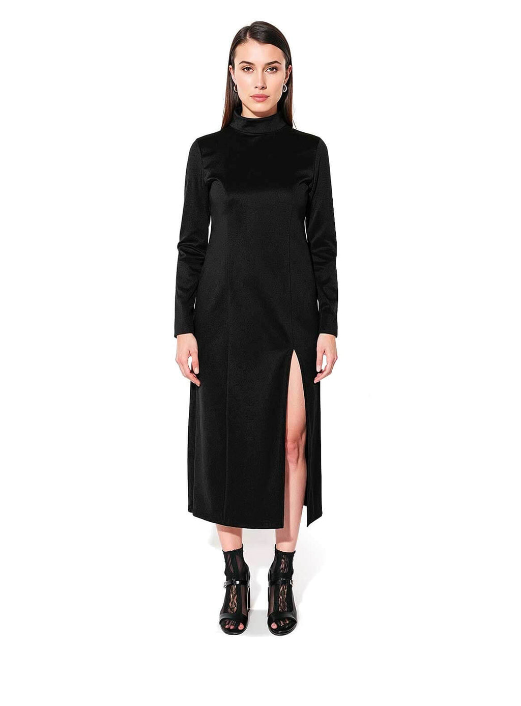 Bold and elegant leather dress with flattering fit, offering comfort and sophistication for special occasions.